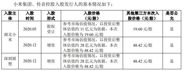 小米集团▪☆●、传音控股分别通过湖北小米长江产业基金合伙企业(有限合伙)、深圳市展想信息技术有限公司间接持有灿瑞科技的股份0.65%、0.98%。