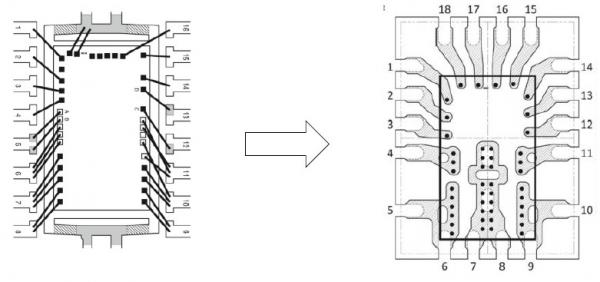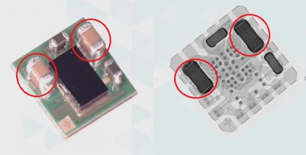 LTM系列进化史,在封装技术上的演进就特别明显,从普通塑料封装,到加入金属散热衬底,再到发展出自己的元件封装(Component on Package,简称CoP)。CoP这是一种立体封装技术,该技术将大功率电源芯片外配的电感通过封装技术放置于芯片上方,将其作为散热器于气流中,这样既不占用PCB面积,又提升了散热性能,从而可以提高功率密度。