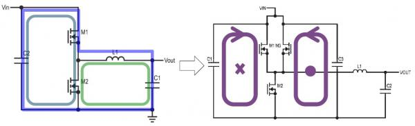 图3:传统电流回路拓扑(左)与Silent Switcher拓扑(右)(图源:ADI)